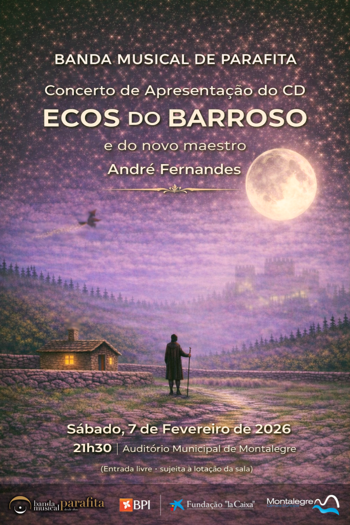 A Banda Musical de Parafita apresenta, no próximo sábado, 7 de fevereiro de 2026, pelas 21h30, no Auditório Municipal de Montalegre, o concerto de apresentação do seu novo projeto discográfico, “Ecos do Barroso”.